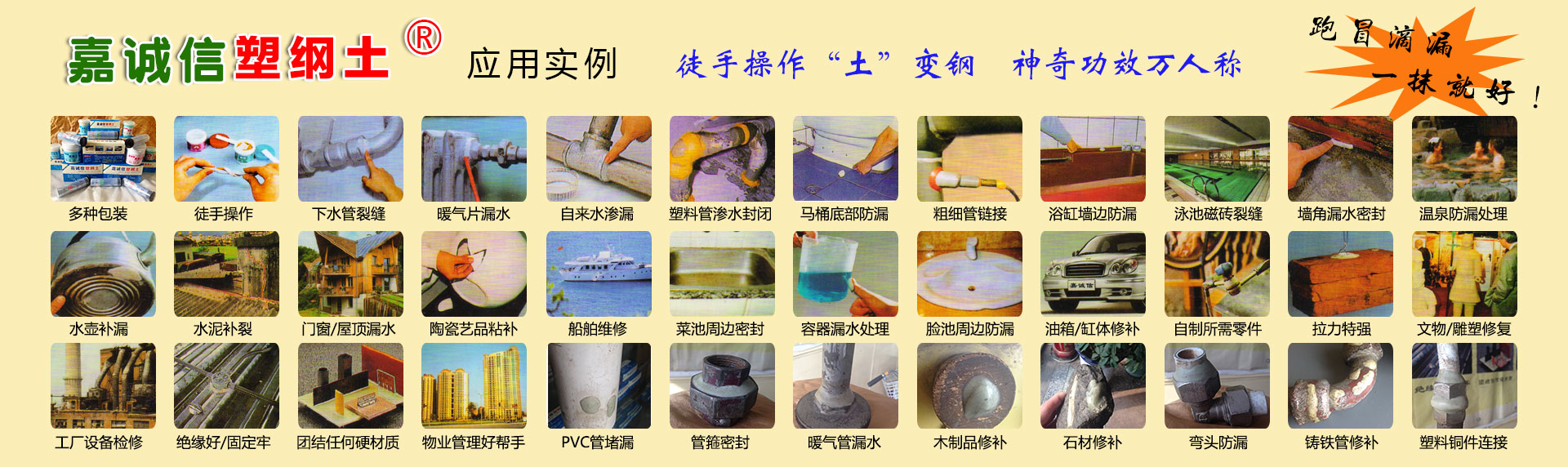 山西嘉誠(chéng)信是中國(guó)塑鋼土品牌產(chǎn)品的合法專(zhuān)業(yè)廠(chǎng)家,《嘉誠(chéng)信塑鋼土》是中國(guó)正宗合法之塑鋼土!其他任何人、任何廠(chǎng)家商家號(hào)稱(chēng)的所謂“塑鋼土”均為假冒偽劣侵權(quán)之貨!